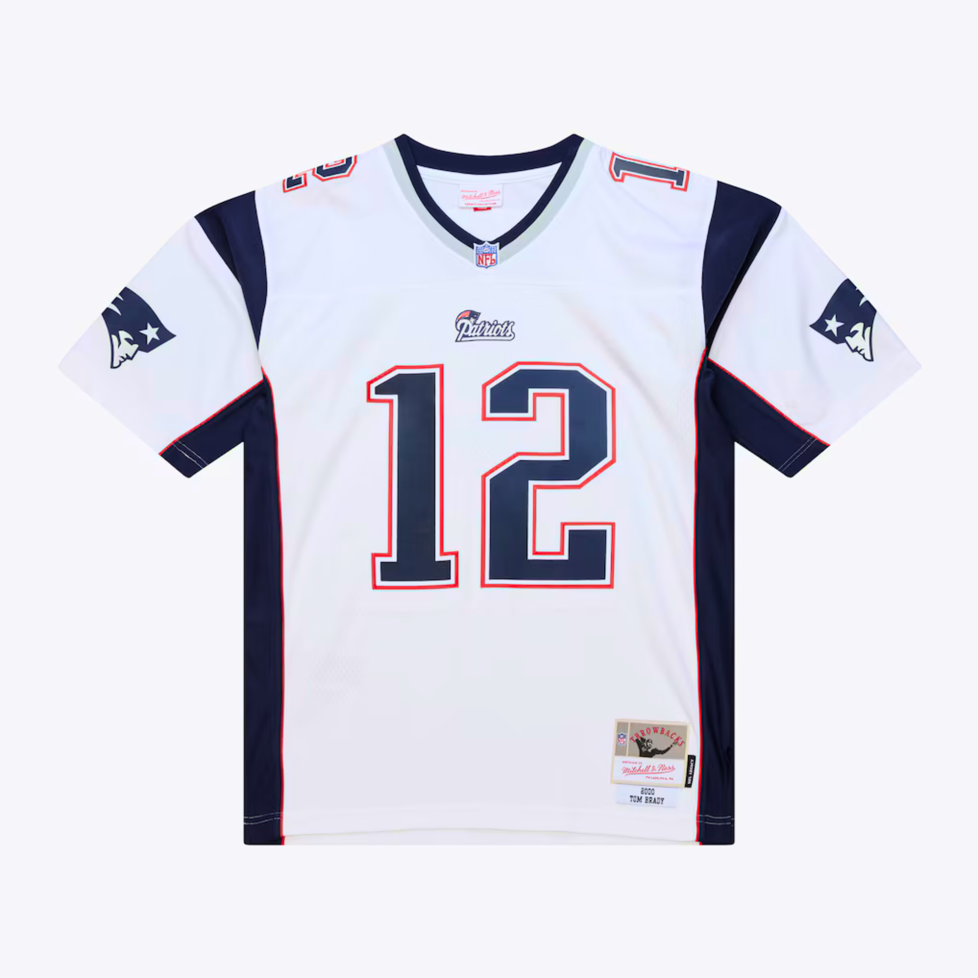Step back in time with this Mitchell & Ness legacy replica jersey celebrating Tom Brady's iconic era with the New England Patriots. Crafted in crisp white, this throwback piece captures the authentic look of early 2000s football glory. Perfect for die-hard fans who remember the dynasty's rise, it blends vintage style with quality construction. Whether you're tailgating, hitting the bar, or just showing your Patriots pride, this jersey delivers nostalgia with serious swagger. Own a piece of football history!