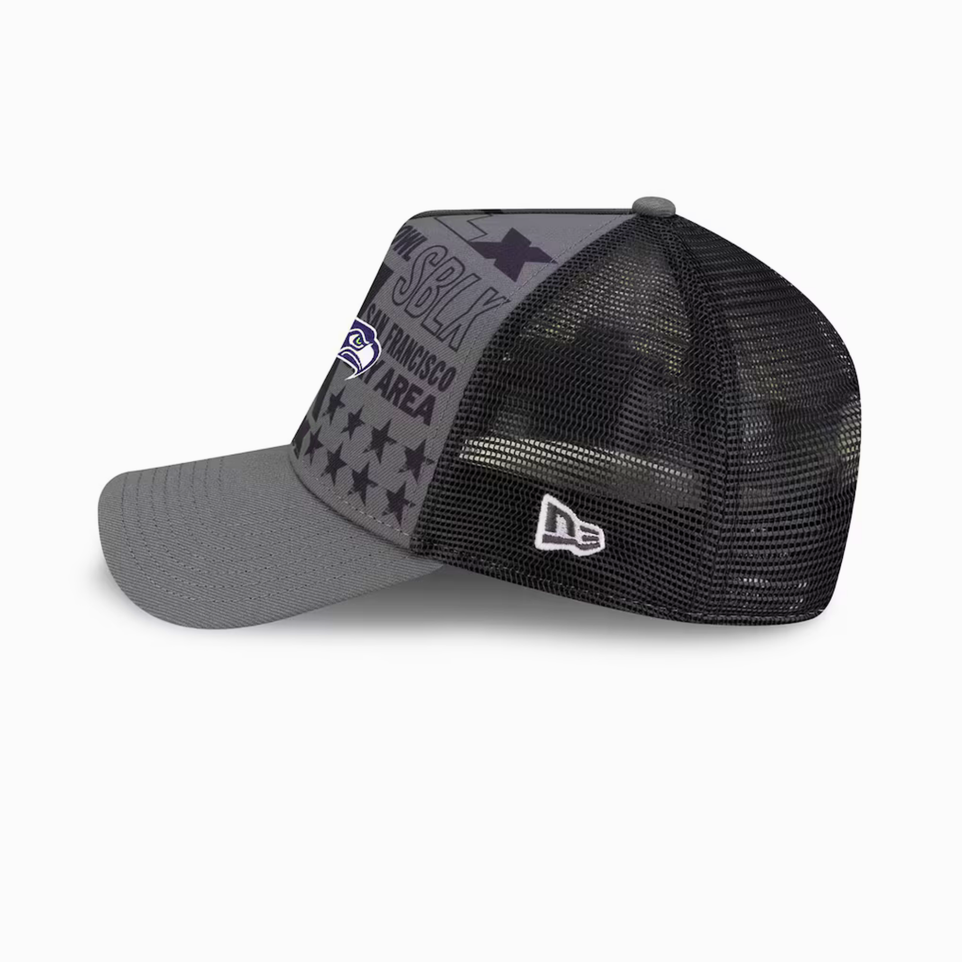 Rock your Seahawks pride with this charcoal New Era 9FORTY A-Frame trucker hat, celebrating Super Bowl LX in style. The classic adjustable fit keeps you comfortable whether you're tailgating, heading to the game, or just showing your team spirit around town. Featuring the iconic Seahawks logo and Super Bowl LX branding, this hat combines vintage trucker vibes with modern fandom. Perfect for die-hard fans who want to rep their squad with a little attitude and a whole lot of swagger.