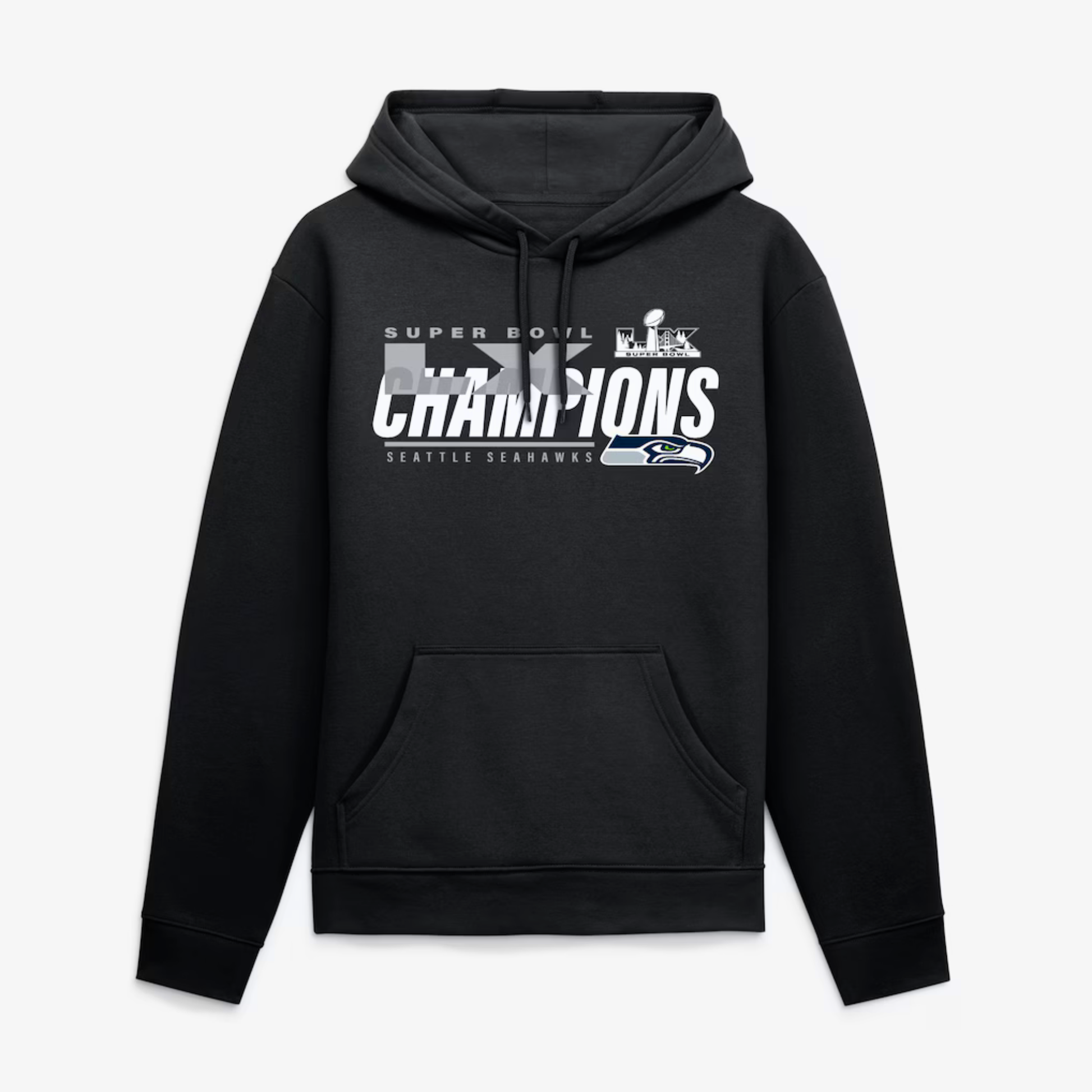 Celebrate the Seahawks' legendary Super Bowl LX championship with this iconic victory hoodie from Fanatics. Crafted in classic black, this comfortable pullover features bold Seahawks branding that lets every fan wear their pride with style. Perfect for game day, casual outings, or showing your team spirit year-round, this hoodie combines quality construction with that unmistakable championship swagger. Whether you're reliving the glory or supporting your squad, this is the ultimate way to rep Seattle's winning moment.